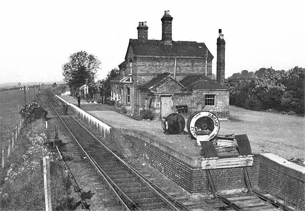 There was a goods loop at the east end of the station with a short siding serving a loading dock at the east end of the passenger platform and joined to it. A second siding came off the loop running behind the loading dock. Cattle pens were sited alongside this siding. A signalbox opposite the loading dock controlled access to the goods yard. After closure to passengers the station continued to handle goods traffic until 1st December 1958.