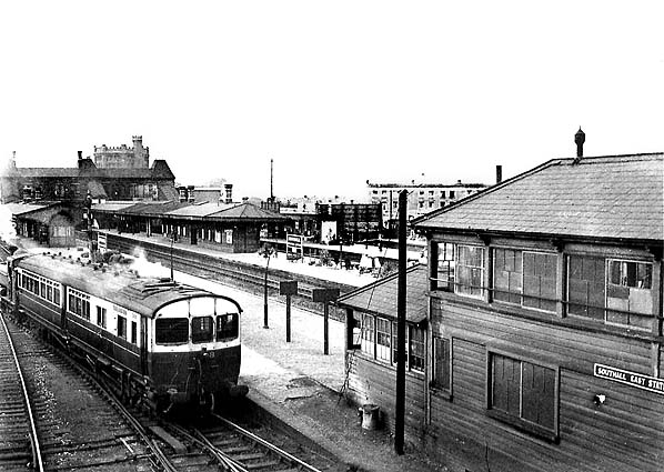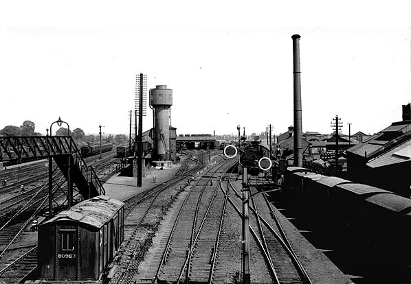 During WW2 the main shed was damaged by bombing and re-roofed c1943. This shed was substantially rebuilt in 1953/4; it still had six roads, but the repair shop alongside was replaced with a 2-road diesel depot; this comprised a steel frame on a brick base. A new repair shop was provided to the east. The coaling stage to the west of the shed was replaced during the |