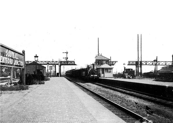 shortened c1980s so that only two of the three French pavilion roofs remain, no longer carrying their attractive ironwork. The building is now only above the fast lines, and it contains a booking office and a newsagent's shop. A footbridge gives access to platforms 3 and 4, while a gate prevents access to the other three, under normal circumstances. Although the passenger service on the Brentford branch was withdrawn in 1942 station nameboards still showed the suffix 'Brentford Junction' until the mid 1950s.