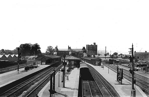 Southall station looking west from the footbridge linking Bridge Road and Park Avenue