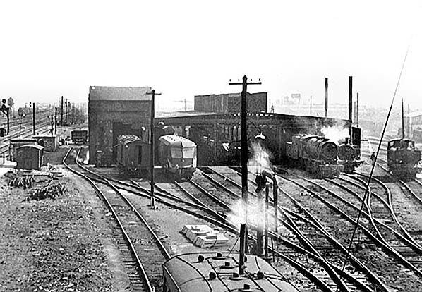 The six-road GW shed was damaged by bombing during WW2 and re-roofed c1943.