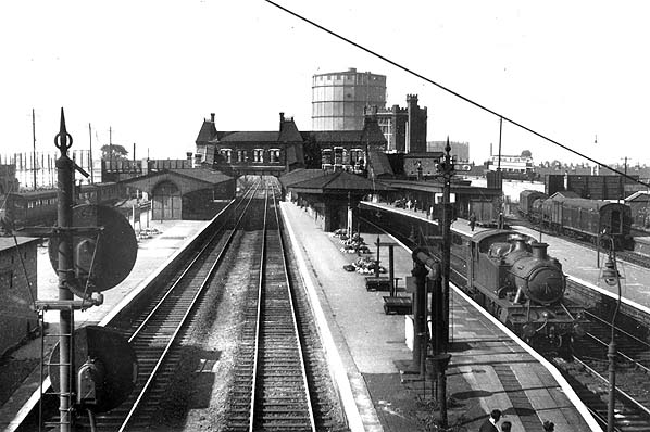 Southall station looking west from the footbridge linking Bridge Road and Park Avenue