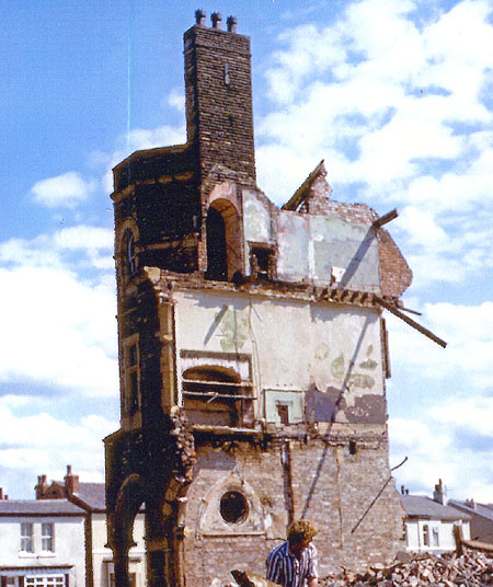 The remains of Southport Central on 16 August 1982. The corner tower was the last section of the station to be demolished.