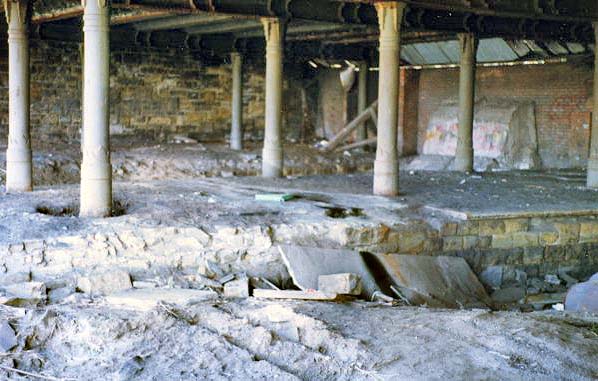 Sections of Southport Lord Street platforms seen in 1989. Under the Rotten Row overbridge sections of the platforms had survived. When this view was taken the station's train shed was being demolished and the site, including the overbridge, was being cleared for a supermarket development.
