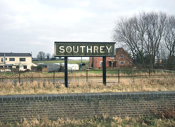 Southrey station in January 2010, the former Railway Hotel (now Riverside Inn) is seen in the background.