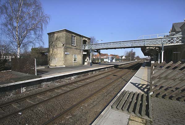 Spalding station looking north in March 2010. The continuation of the footbridge