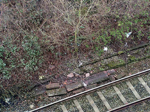 Spellow station - collapsed section of the eastbound platform in March 2008