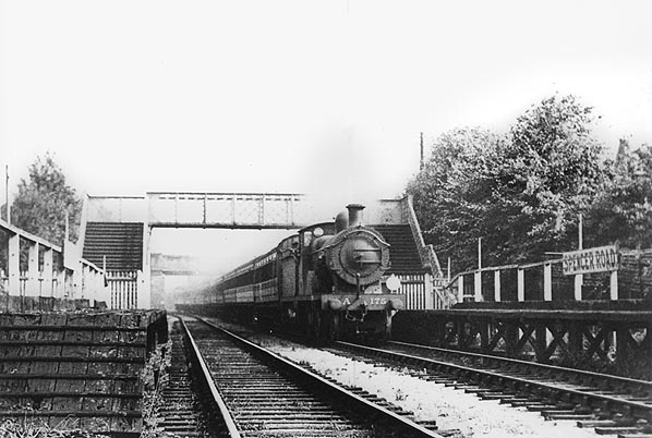 Notes: On 1st July 1906 a new halt was opened between Coombe Lane and Selsdon in an attempt to attract more passengers to the Selsdon Line. Spencer Road Halt had two 100 foot timber platforms made our old sleepers but no buildings, just a wooden name board and a row of posts for holding oil lamps in winter. A lattice footbridge linked the platforms and also formed part of a footpath between Spencer Road and Birdhurst Rise.