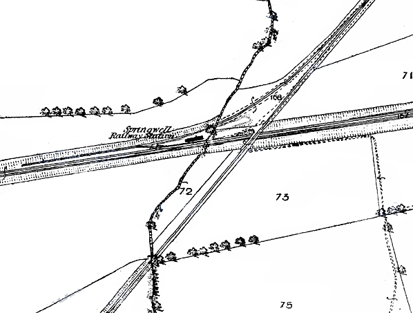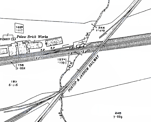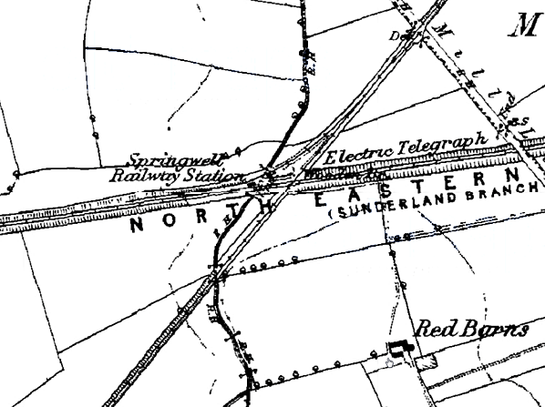 The OS 1:10,560 map of 1862 shows the station immediately west of the point where the Springwell Waggonway crossed the Gateshead – Monkwearmouth line, and a short connecting west-to-north spur led from the station on the latter line. A building is shown in the ‘V’ between the up line to Monkwearmouth and the spur. The February 1863 Bradshaw shows the service in brief narrative form, apparently showing only the services to Jarrow, not the reverse ones. No images or architectural details have been found of the station.