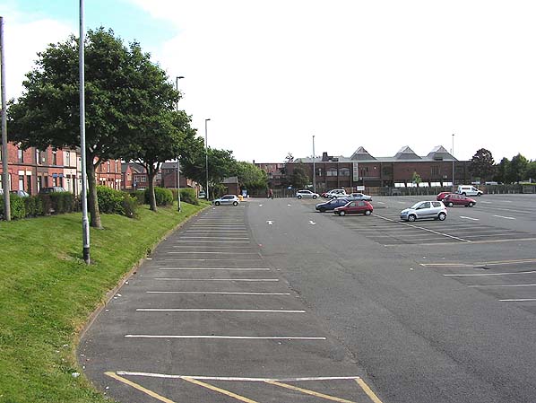 The site of St. Helens Central Station goods yard in June 2005. The Station would have been at a higher elevation than the present car park Photo by Paul Wright