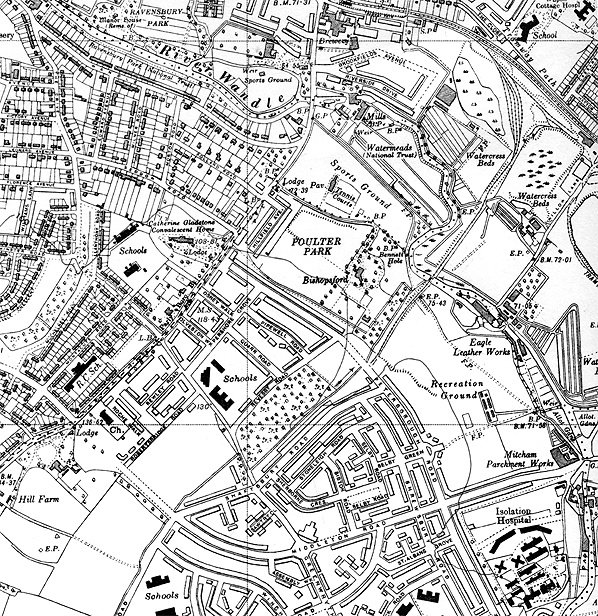 Photo from I Gotheridge collection In remembrance of the area's historic ownership by Westminster Abbey, the roads are named in alphabetical order after Monasteries and Abbeys starting in the north-west with Aberconway Road and ending with Woburn Road in the south-east. The area was intended to function as a community, or a series of communities, and for this purpose eighteen schools, seven churches, two large pubs, and the 2,000-seater Gaumont cinema (now a bingo hall) were built. Shops were constructed too, sixty by 1938. There were 9,000 houses and flats, to accommodate 40,000 people. The huge St. Helier Hospital, a landmark for miles around, built near the top of Rose Hill, was opened in 1938. In 1943, John Major, later to be Prime Minister, was born there. ![]() This 6" Ordnance Survey map from 1938 shows the line was cut back to Peterborough Road following the completion of the estate.