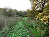 Photo from John Mann collection ![]() The site of the bridge over the River Wandle looking south from Bennetts Hole nature reserve in November 2007. The line continued to the left of the tree in the centre of the picture.