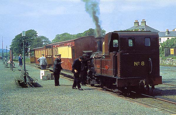 No. 8 Fenella waits to depart from St. Johns Station in September 1964 with a Douglas service