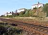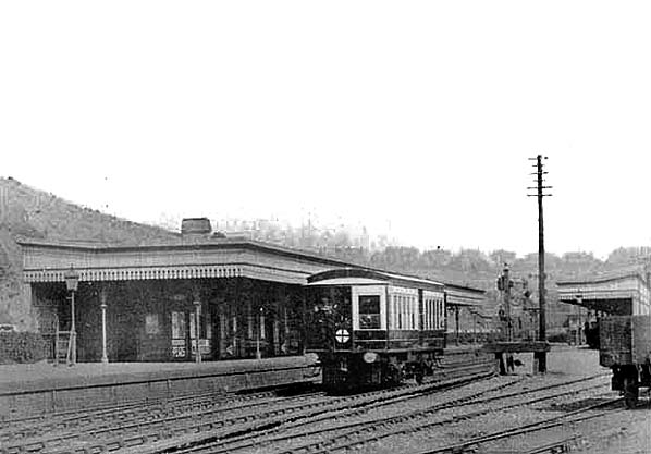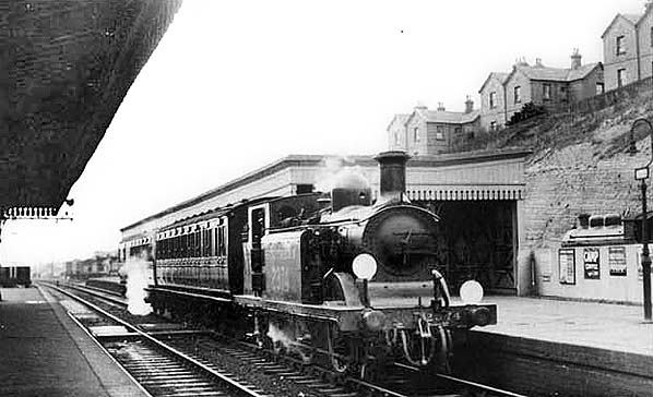 ![]() 1909 1:2,500 OS map shows the station has been resited a short distance to the east. There is now a much enlarged goods yard to the south of the station. The original goods shed appears to have been retained but numerous new sidings have been added, together with a goods store, cattle dock and a 1 10-ton capacity crane. The original engine shed has been replaced with a 4-road shed and a larger turntable has been provided. There has also been considerable residential development on both sides of the line. The original station building was where the cattle dock is shown. Click here for a larger version.