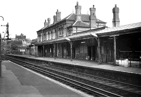 Photo from John Mann collection ![]() Southern Railway 'target' signs were still in use at the station until closure in 1967.