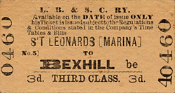 Copyright photo from John Alsop collection ![]() An eastbound train waits in the down platform of St. Leonards West Marina station c1934.2374 is a Billington designed 0-4-4T D-3 built for the London Brighton & South Coast Railway at Brighton works in December 1892. This class of loco were built for working passenger trains along country and main lines. It originally had the number 374. It just survived into BR ownership. After being renumbered 32374 it was withdrawn from Tonbridge shed in January 1949 and cut up later that year.