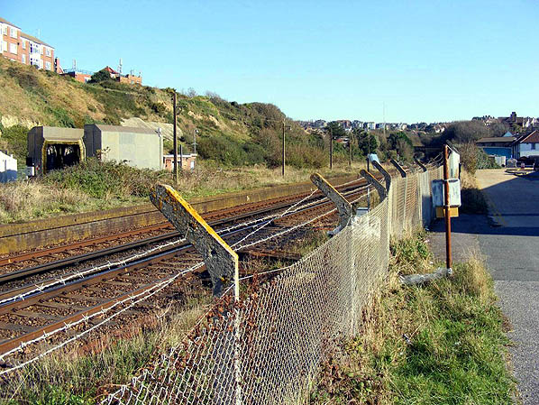 The eastbound platform at St. Leonards West Marina looking east in October 2007. The main station building was to the right of the fence