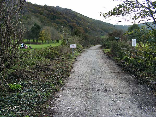 Photo by Paul Wright ![]() ![]() Looking north towards the site of St Melyd Golf Links in November 2010. The stopping place was on the far side of the footpath which can be seen crossing the trackbed from the left to the right.