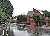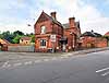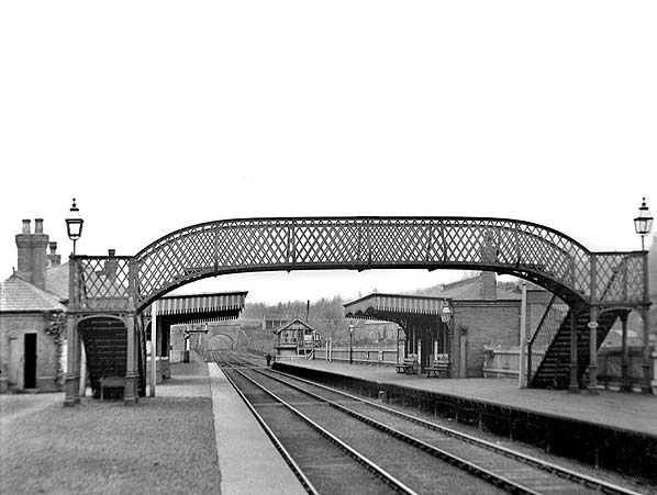 Unlike Thorneywood and Sherwood stations the up platform was of wooden construction giving it more of a temporary impression. The single-storey brick booking office and main waiting room was located on the down side. A brick waiting room stood on the up side with brick foundations on solid ground below the timber platform. Both platforms had wooden protective canopies attached to the buildings by ornamental brackets. The 30-lever signal box was situated beyond the end of the up platform; this was opened with the station in 1889, but from October 1904 was operated by the stationmaster only when required to deal with traffic. Behind the signal box was the goods yard comprising three loop sidings with a brick goods shed between them. The shed had two canopies, one over the siding that passed it and one on the other side for the benefit of road vehicles loading or unloading in the yard. There was also a short siding on the down side serving the cattle dock behind the north end of the platform. The stationmaster's house was opposite the entrance to the goods yard in The Wells Road. Both the house and the station buildings were designed by TC Hine.