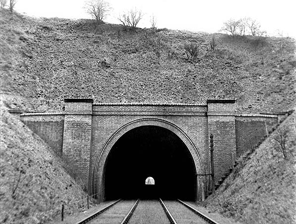 ![]() The north portal of Thorneywood Tunnel in 1904. Thorneywood goods yard is seen at the far end of the tunnel. St. Ann's Well station is behind the photographer on the far side of the skew bridge over The Wells Road.