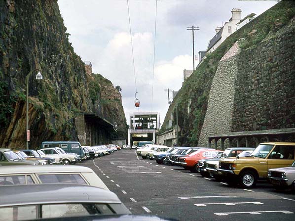 When Fort Regent was developed as a tourist attraction in the early 1970s, a cable-car was provided for easy public access to the fort; its lower station was at the north end of Snow Hill car park. This remained in use until the late 1980s but has now been demolished, although the upper station survives in a derelict state.