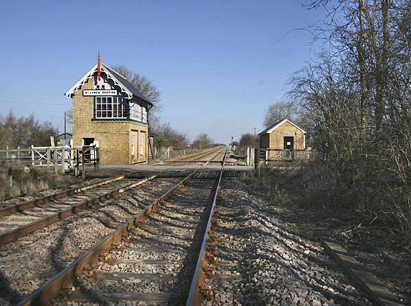 St. James Deeping station looking north in March 2010, the platforms would have been visible on both side of the track at this point.
