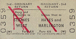 Staines West looking towards the buffers in August 1955. The run-round loop is seen in the foreground. Copyright photo by H C Casserley
