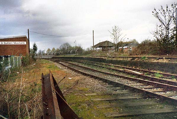 Staines West station looking north in 1987. The oil distribution depot is seen beyond the station/