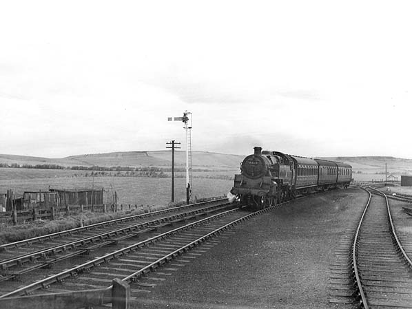 Approaching Staithes Station from Whitby in c.1950's. The sidings going into the goods yard can be seen on the right.