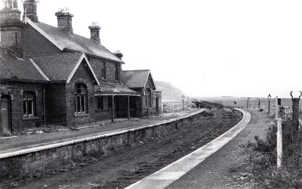 Staithes Station looking north west in 1959, shortly after track lifting.
