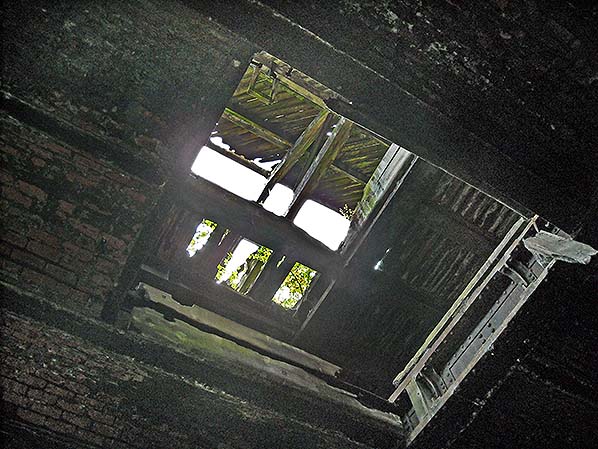 Daylight is streaming through the damaged roof of Staley & Millbrook station’s goods warehouse (October 2015).