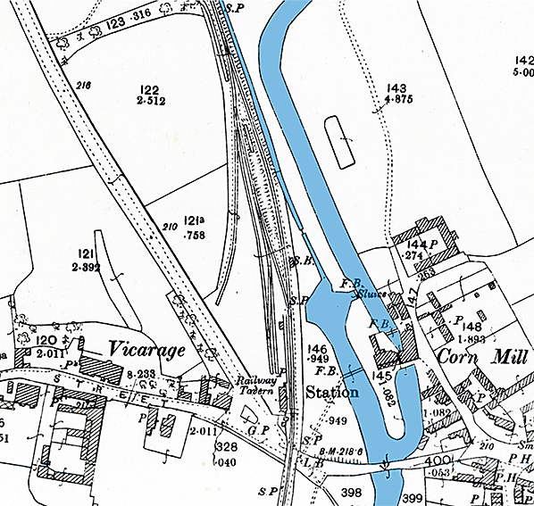 Photo from John Mann collection ![]() ![]() 1897 1:2,500 OS map shows the layout of Standon station and goods yard. The private siding that served the corn mill (seen in the picture below) had not yet been provided.