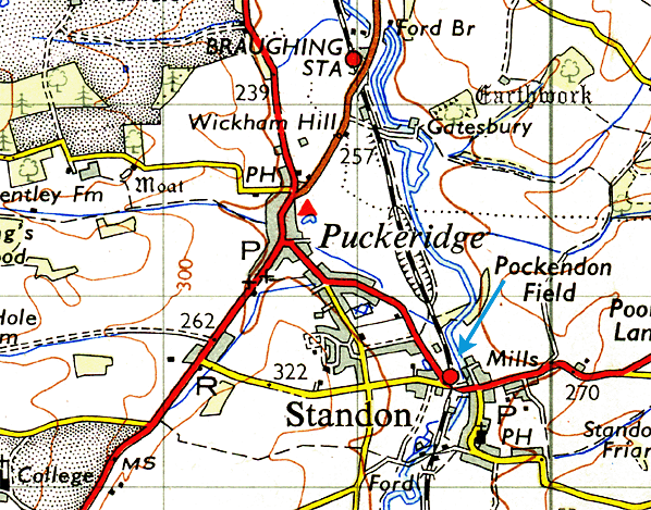 Photo by Nick Catford ![]() Looking north across the site of the Stortford Road level crossing towards the site of Standon station. The station site os now occupied by Regal Close. Standon Mill seen on the right was converted into a residential property in 2005/6.