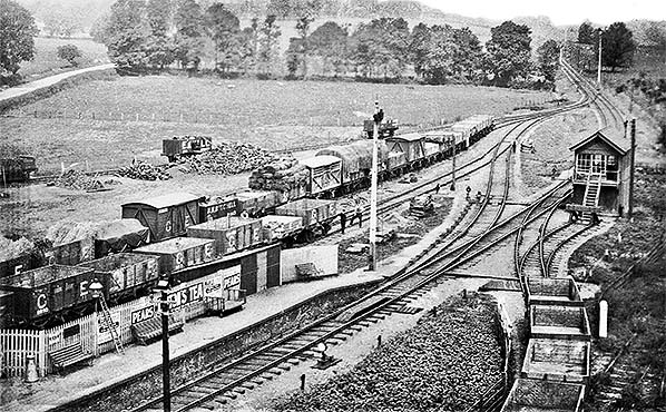 ![]() A northwards view of Standon goods yard and signal box, taken from the adjacent flour mill during the early years of the 20th century. Click here for a larger view and more detailed caption.
