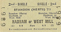 Photo received from Martin Tristan Crawford ![]() Standon station looking north towards Buntingford in 1957.