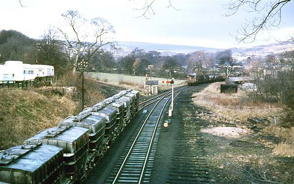 Presflo cement wagons passing the site of Stanhope shed right) in c.1967
