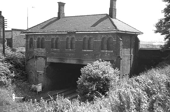The rear of the station building at Stanley seen from Newsham Park in June 1969. The bricked up doorway that gave access to the up platform can be seen to the left of the line.