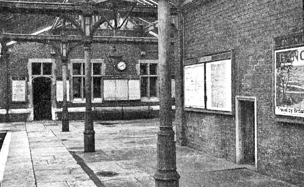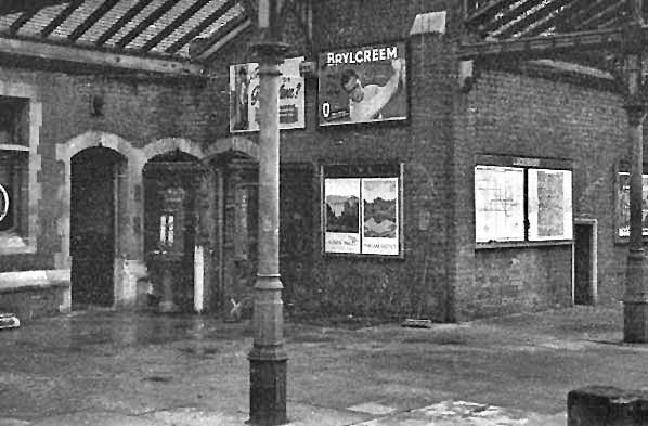 Photo by Dewi Williams from Dewi's Trains, Trams & Trolleys web site ![]() Another view of the concourse in September 1949. Note the Tube map, which appears to be on a board headed 'London Transport' and, if so, the second poster may have been a bus, tram and trolleybus route map. Tube maps were and still are common at national network stations in south-east England and sometimes at major stations elsewhere so this one at Stanmore is no surprise. Passengers from Stanmore and Belmont could change onto the Bakerloo Line at Harrow & Wealdstone and through tickets would have been available but in reality, and given that passenger traffic at Stanmore was always light, most people likely used Stanmore LT station, which was Metropolitan until 1939 when it became a branch of the Bakerloo Line allowing passengers to travel directly to Central London and onwards to Elephant & Castle. The remainder of the advertisements seen here are all posters as opposed to enamelled metal.
