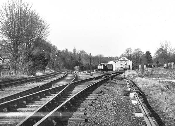 Photo from Ian Baker collection ![]() Stanmore Village station looking south from the buffers in 1961. After closure to passengers in 1952 the station building was used by a potato merchant.