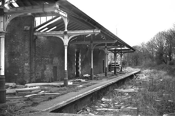 ![]() Station Name: STANMORE VILLAGEStanmore Village Station Gallery 4: ![]() Stanmore Village station looking south from the buffers in February 1968. Judging by the asbestos strewn over the platform and track it is assumed that much of the platform beneath the canopy was used to store to ducting that was removed by the last train to depart from the station