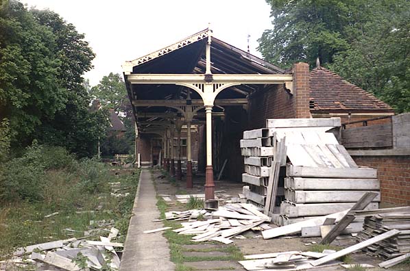 the platform in April 1968. Photo by Nick Catford ![]() Looking north at the shortened platform at Stanmore Village station in June 1968. The platform originally extended a further 90ft behind the photographer. It was shortened by British Railways sometime before closure to passengers.