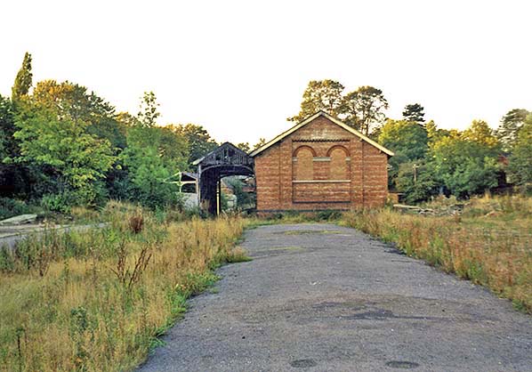 Photo by Nick Catford ![]() The delightful station building still looked in fair condition externally in March 1968 although some tiles are missing from the roof of the tower. The entrance portico in front of the door was removed shortly after closure to passengers in 1952 as was the clock which has left a mark on the brickwork above the door. A post collection box was provided from the opening of the station. The box remained in use until April 1970; at that time it still showed 'LMS Station' on the location plate.