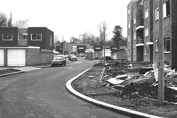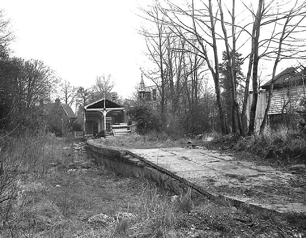 Looking north along September Way at the site of the platform at Stanmore Village station in December 1973. The much-altered station building can be seen in the background. Photo