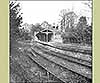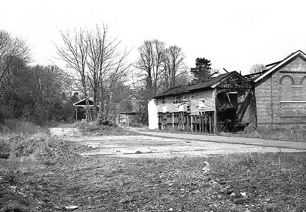 Stanmore Village station looking north in March 1969; the shortening of the platform is obvious in this view. The gutted goods shed is seen on the right. Photo