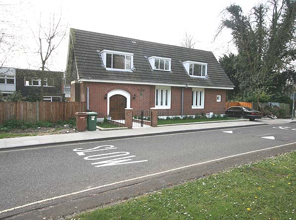 The newly completed 'conversion' of the station building into a house in December 1973. The ecclesiastical style of entrance has been retained although the doors are assumed to be replacements. The stone window frames and the unusual quatrefoil window have also been retained; all of the brickwork is new. The sign top the right of the building indicates that the house is for sale. At that time the new house was sold for £16,500. The new owner did not stay there long. In 1978 two garages were converted into bedrooms and the station building was once again for sale with an