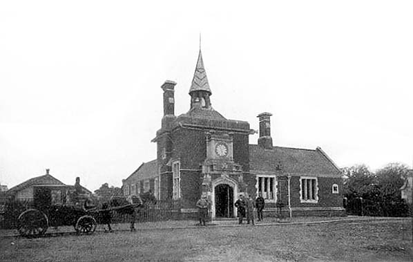 ![]() Station Name: STANMORE VILLAGE![]() The church-like station building at Stanmore before April 1904 (the date this postcard was sent). Behind the camera is what was then Station Road, with Old Church Lane off to the left and Gordon Avenue off to the right. A horse-drawn cab waits for pasengers. The goods shed is seen in the distance behind the cab. Photo from John Mann collection ![]()