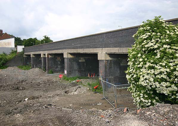 Bridge taking the A619 over the Great Central line at Staveley Central Station (June 2008). This will be demolished and replaced by a new bridge as part of the Staveley North Loop Road.