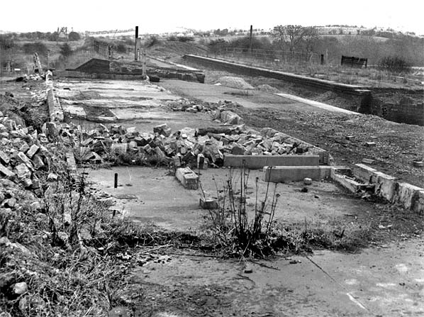 Looking south east from the down platform at Staveley Works station in March 1969. The main station building appears to be recently demolished. The demolished bridge over the