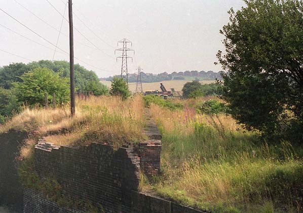 The site of Staveley Works station lookiing south-east across the demolished canal bridge in August 1996. The platform is seen beyond.