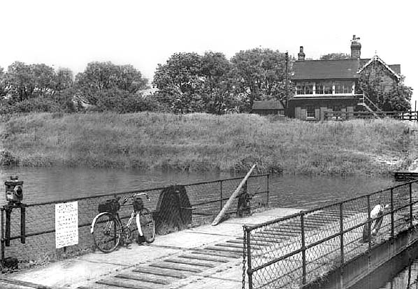 Stixwould ferry in the 1950s, the signalbox is seen in the background.